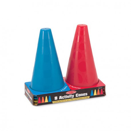 Setul include 8 conuri de plastic disponibile in patru culori diferite si instructiuni pentru zeci de activitati interesante de la curse pana la jocuri de echilibru.