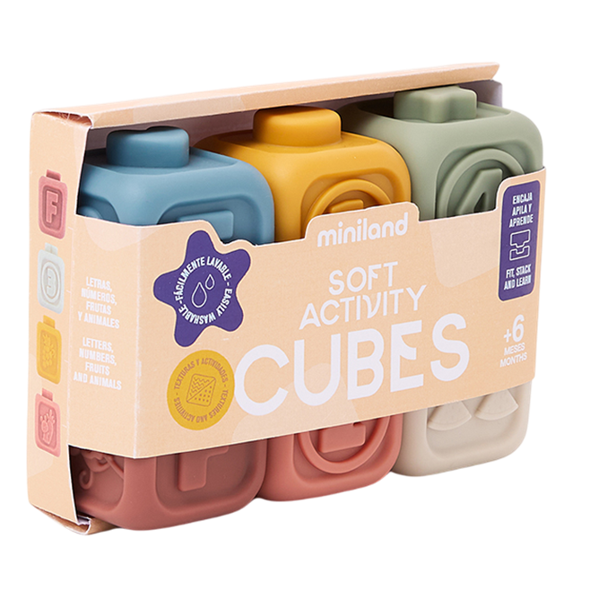 Un univers de explorare pentru bebeluși! Descoperă Soft Activity Cubes de la Miniland, niște cuburi moi și senzoriale care transformă fiecare moment de joacă într-o experiență stimulatoare.
