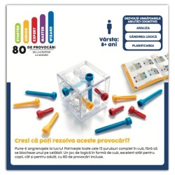 Criss Cross Cube este un joc logic tridimensional din seria Smart Games, conceput pentru copiii mai mari si adulti care iubesc provocarile de gandire in spatiu. Scopul jocului este aparent simplu, dar extrem de provocator: toate cele 13 suruburi trebuie fixate complet in cubul transparent, fara ca acestea sa se blocheze intre ele.