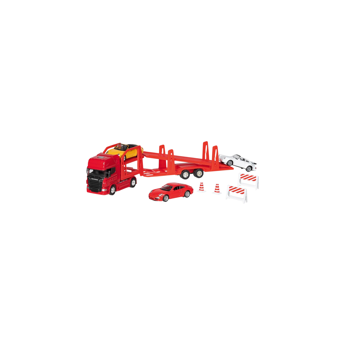 Camion die-cast transportor de masini Scania V8, scara 1 la 60-64, lungime 29 cm