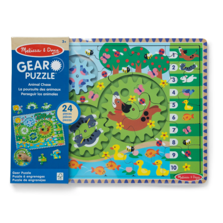 Puzzle din lemn cu rotite dintate pentru invatarea numararii prin joaca Animale vesele